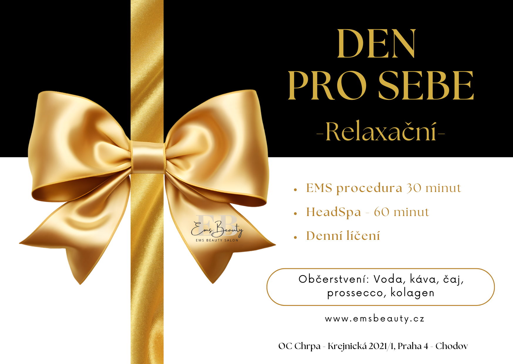 Dárkový balíček - Den pro sebe - Relaxační. Zahrnuje EMS proceduru na jednu Vámi zvolenou partii na 30 minut. Japonskou relaxační terapii HeadSpa na 60 minut, zakončené denním líčením.